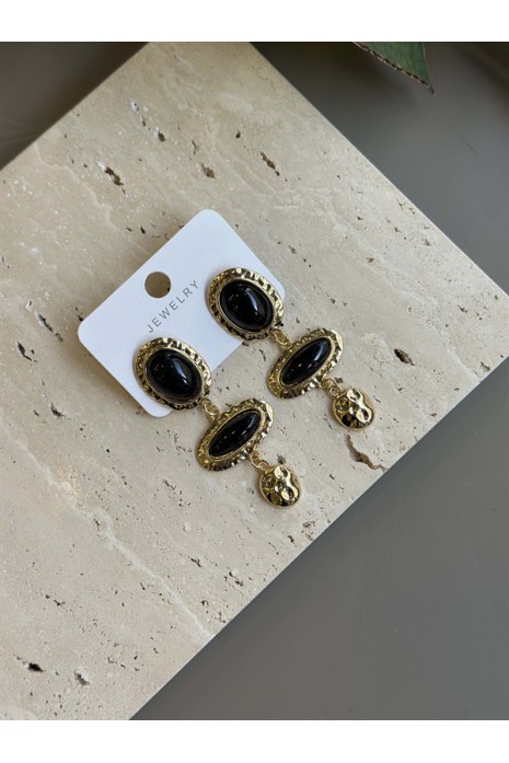 Taşlı Küpe - Siyah