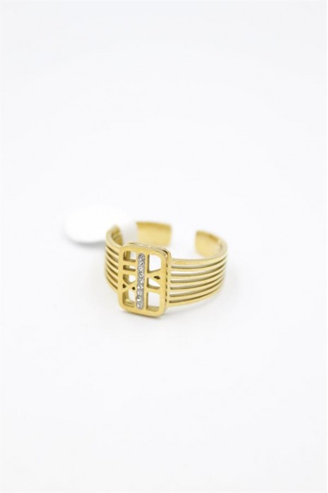 6'lı Taşlı Roma Rakamlı Yüzük - Altın