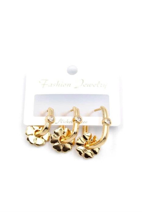 3'lü Çiçek Küpe - Altın