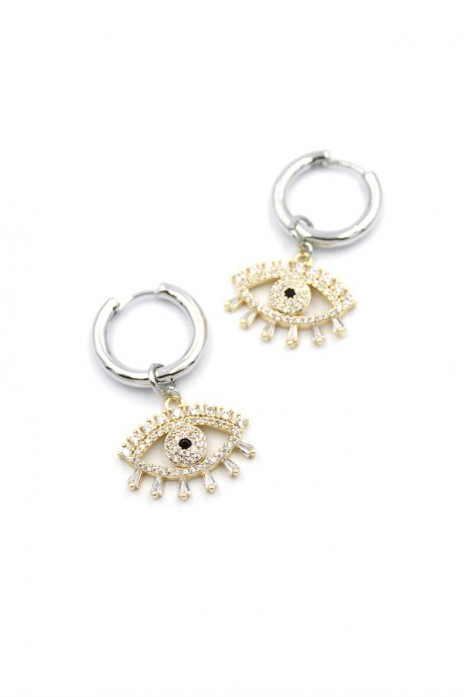 Zirkon Taşlı Göz Halka Küpe - Altın