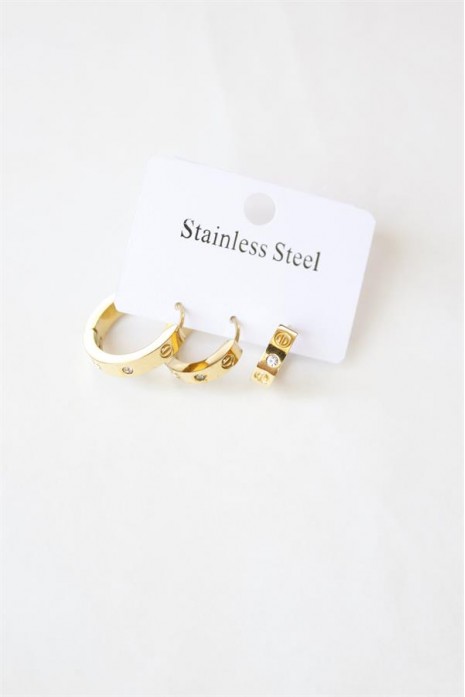 3'lü Taşlı Çelik Halka Küpe - Altın