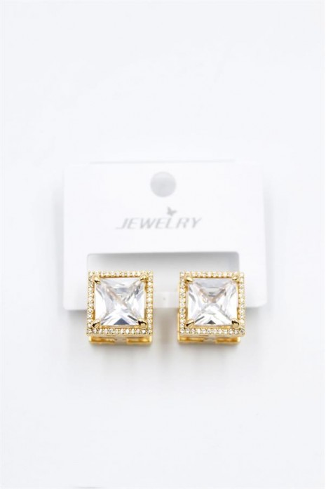 Kare Taşlı Küpe - Beyaz