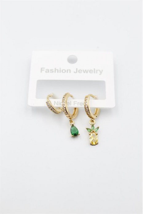 3'lü Ananas Küpe - Altın