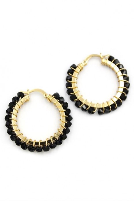Kristal Boncuk Halka Küpe - Siyah