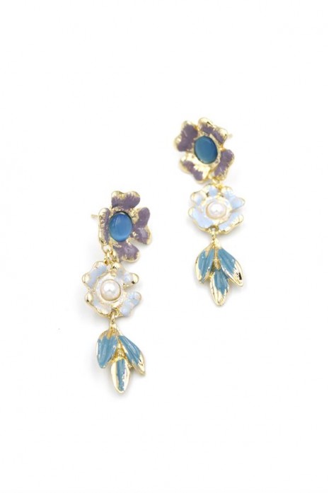 Metal Çiçek Küpe - Turkuaz