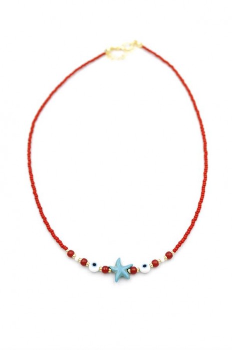 Boncuk Deniz Yıldzı Kolye - Kırmızı