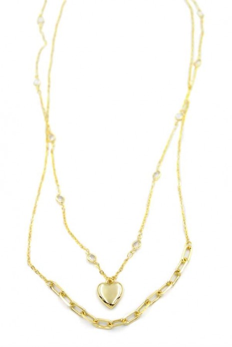 Kalp Kolye - 90cm - Altın