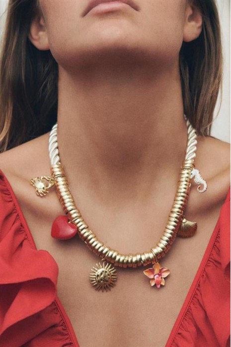 Metal Charmlı Kolye - Altın