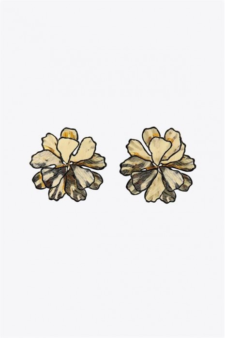 Siyah Detaylı Çiçek Küpe - Altın