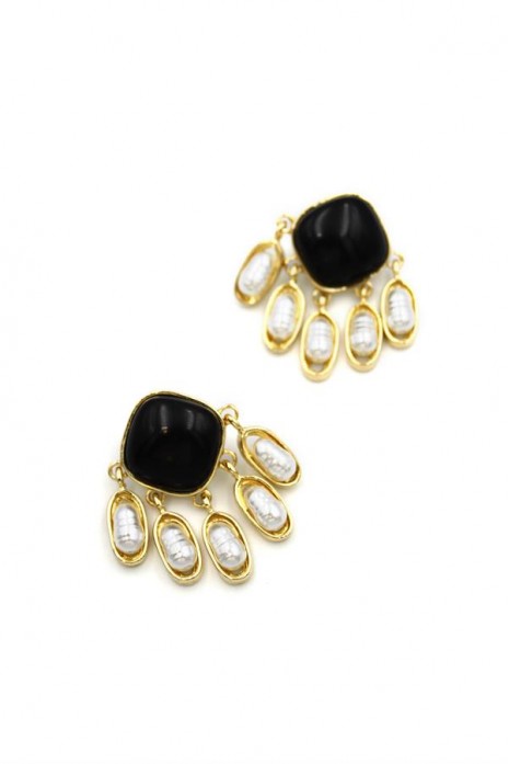 İnci Sallantılı Küpe - Siyah
