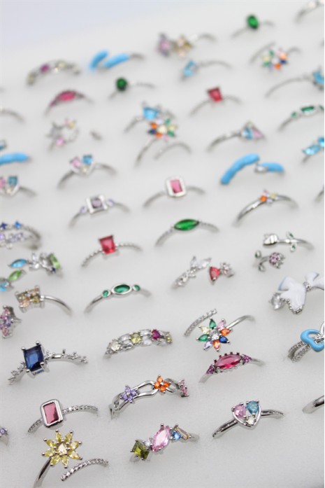 12'li Karışık Prenses Yüzük Seti - Gümüş