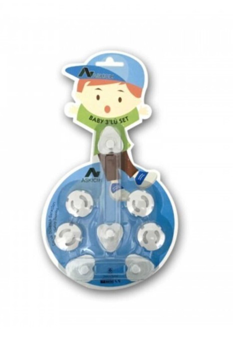 3lü Set Çocuk Bebek Koruyucu Priz Kapatıcı Çekmece Dolap Güvenlik Emniyet Kilidi