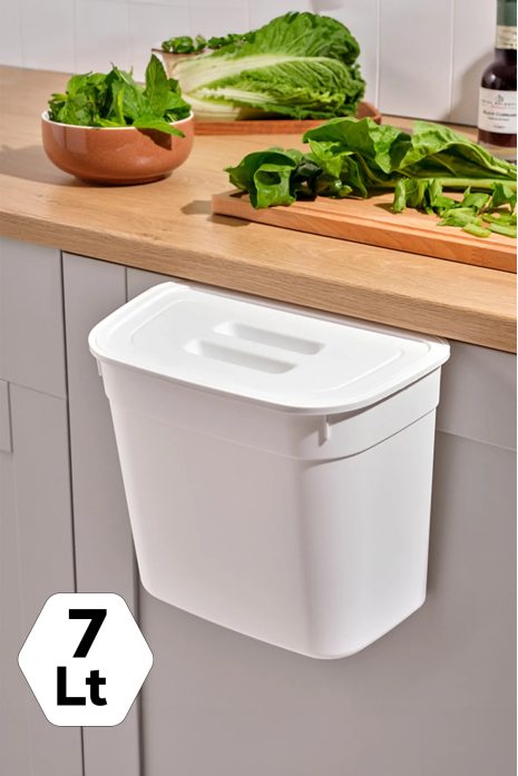 Mutfak Tezgah Üstü Ve Dolap Askılı Çöp Kovası-Kapaklı Pratik Çöp Kovası 7 Litre Beyaz Royaleks-07110