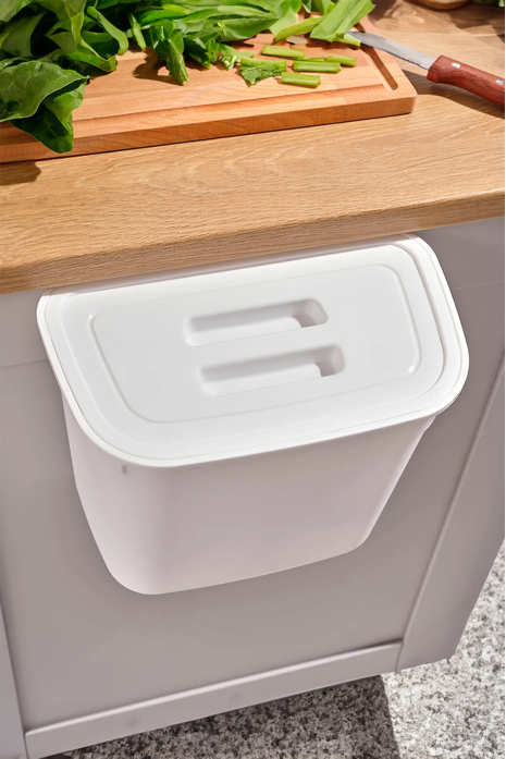 Fonksiyonel Kapaklı Askılı Tezgah Üstü Mutfak Çöp Kovası Çift Yönlü Pratik Kapak 12 Lt.
