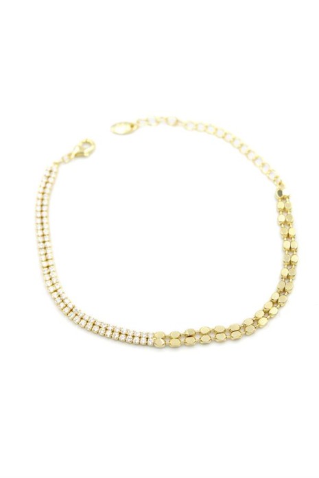 Taşlı Ezme Zincir Bileklik - Altın