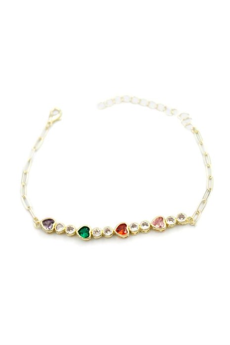 Taşlı Kalp Bileklik - Altın